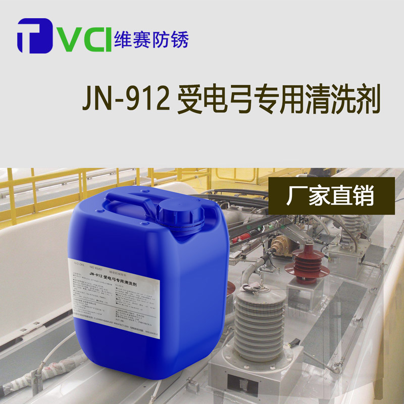 JN-912受電弓專用清洗劑是機車受電弓專用清洗劑,通過溶解、滲透、乳化分散作用迅速去除機車受電弓上的油污、粉塵、油脂、炭化物、鐵末、垢質、生物污染物(鳥蟲血跡、蛋白質、脂油)等,對受電弓金屬和油漆無損傷,對人體安全無害。