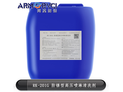 RK-201G 防銹型高壓噴淋清洗劑是由表面活性劑、乳化劑、分散劑、防銹劑等組成的高效防銹型水基高壓噴洗劑,可適用于鋼、鐵等金屬零部件的清洗,具有良好的清洗、防銹能力,且工件表面無白斑、鹽類殘留等痕跡。